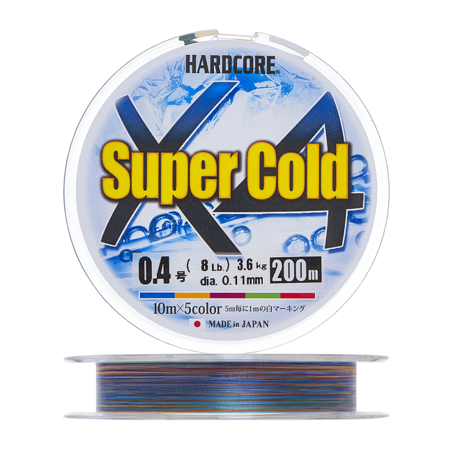 Шнур плетеный Duel Hardcore Super Cold X4 #0,4 0,108мм 200м (5color)