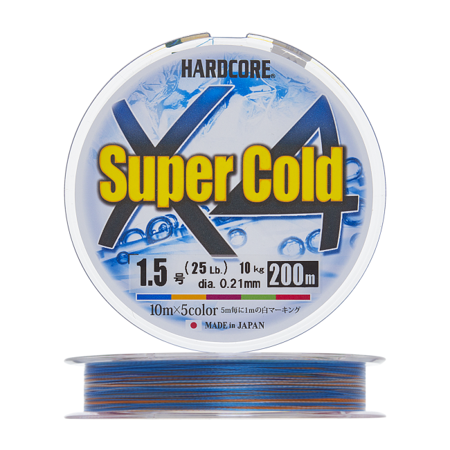 Шнур плетеный Duel Hardcore Super Cold X4 #1,5 0,209мм 200м (5color)