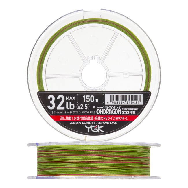 Шнур плетеный YGK G-Soul WX4 F1 Ohdragon #2,5 0,260мм 150м (green with red marking)