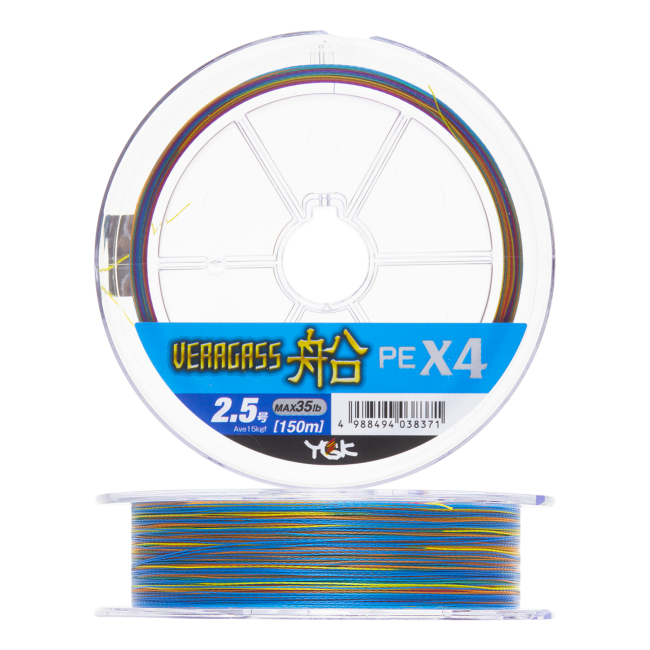Veragass PE X4- один из самых популярных шнуров от компании YGK. Это четырехжильный шнур, который отличается прекрасной износоустойчивостью. Veragass X4 обладает плотным плетением, которое делает леску жёстче, а снасть чувствительнее.