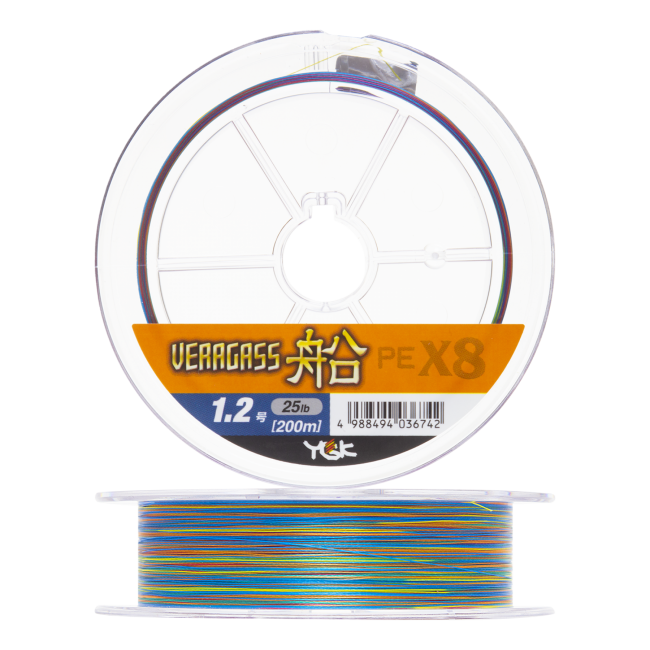 Шнур плетеный YGK Veragass PE X8 Fune #1,2 0,185мм 200м (multicolor)