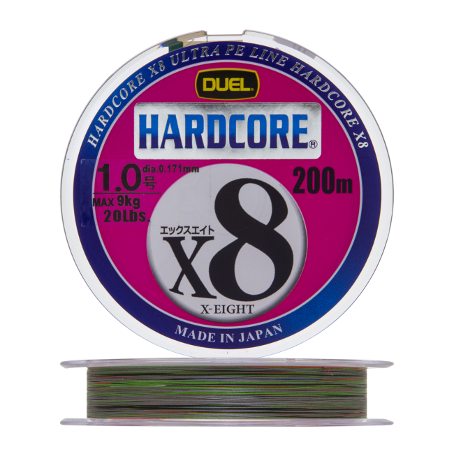Шнур плетеный Duel Hardcore PE X8 #1 0,171мм 200м (5color)