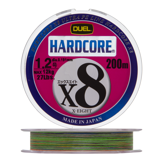 Шнур плетеный Duel Hardcore PE X8 #1,2 0,191мм 200м (5color)