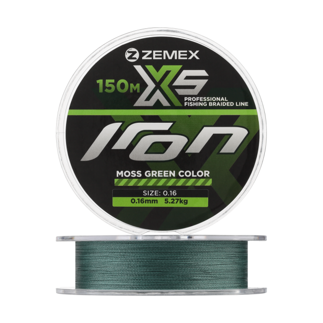 Zemex Iron X5 выпускается в диаметрах от 0.12мм до 0.34мм и доступен в единственном цвете Moss Green, который превосходно маскирует шнур под водой.