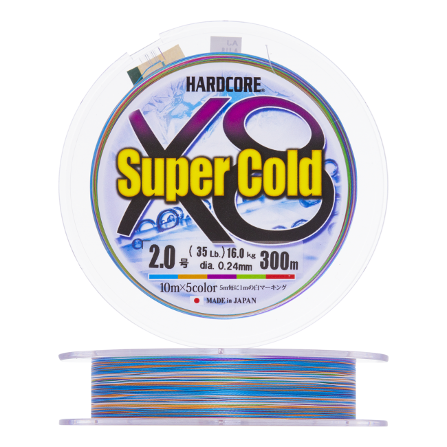 Шнур плетеный Duel Hardcore Super Cold X8 #2,0 0,24мм 300м (5Color)