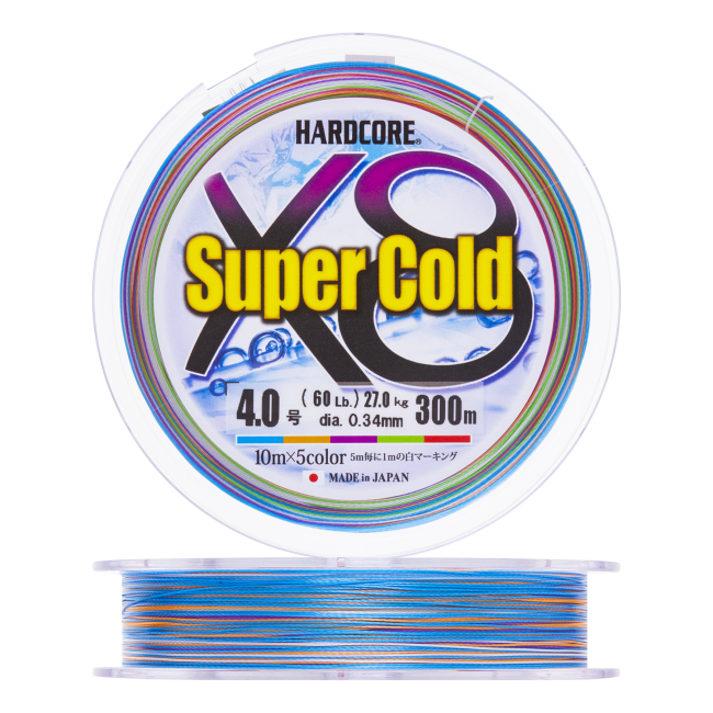 Шнур плетеный Duel Hardcore Super Cold X8 #4,0 0,34мм 300м (5Color)