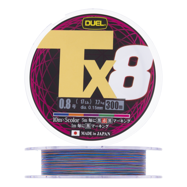 Tx8 – широкая линейка плетеной лески, которая выпускается японской компанией Duel и предназначена для ловли хищника на спиннинговые снасти. Данная модель была разработана для использования в морских и океанических водах, однако высокая износостойкость и прочностные характеристики сделали её востребованной и в пресных водоемах.