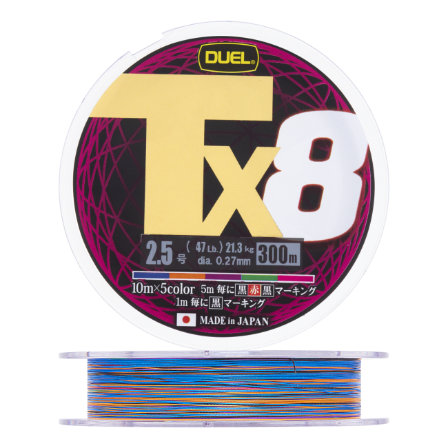Tx8 – широкая линейка плетеной лески, которая выпускается японской компанией Duel и предназначена для ловли хищника на спиннинговые снасти. Данная модель была разработана для использования в морских и океанических водах, однако высокая износостойкость и прочностные характеристики сделали её востребованной и в пресных водоемах.