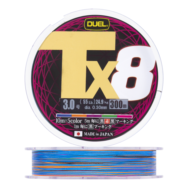Tx8 – широкая линейка плетеной лески, которая выпускается японской компанией Duel и предназначена для ловли хищника на спиннинговые снасти. Данная модель была разработана для использования в морских и океанических водах, однако высокая износостойкость и прочностные характеристики сделали её востребованной и в пресных водоемах.
