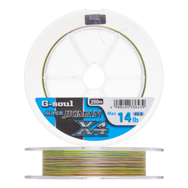 G-Soul Super Jigman X4 — это круглый шнур, который имеет яркую многоцветную окраску, меняющуюся через каждые 10 метров. Также на него нанесено специальное покрытие, улучшающее скольжение шнура внутри колец, за счет этого достигается максимальная дальность заброса. Super Jigman X4 обладает очень плотным плетением, которое делает леску жёстче, а снасть чувствительнее. Это четырехжильный шнур, и он отличается прекрасной износоустойчивостью, поэтому его можно использовать для джиговой ловли в самых агрессивных условиях.