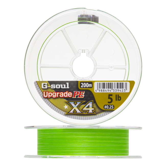 G-Soul Upgrade X4 – настоящий бестселлер, о котором знает каждый спиннингист. Это четырехжильный шнур, который отличается прекрасной износоустойчивостью, поэтому его можно использовать для джиговой ловли в самых агрессивных условиях.