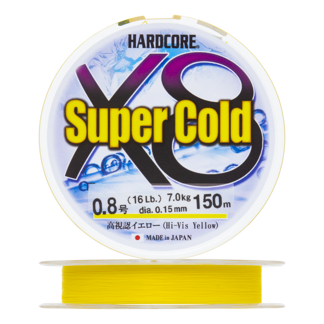 Шнур плетеный Duel Hardcore Super Cold X8 #0,8 0,15мм 150м (hi-vis yellow)