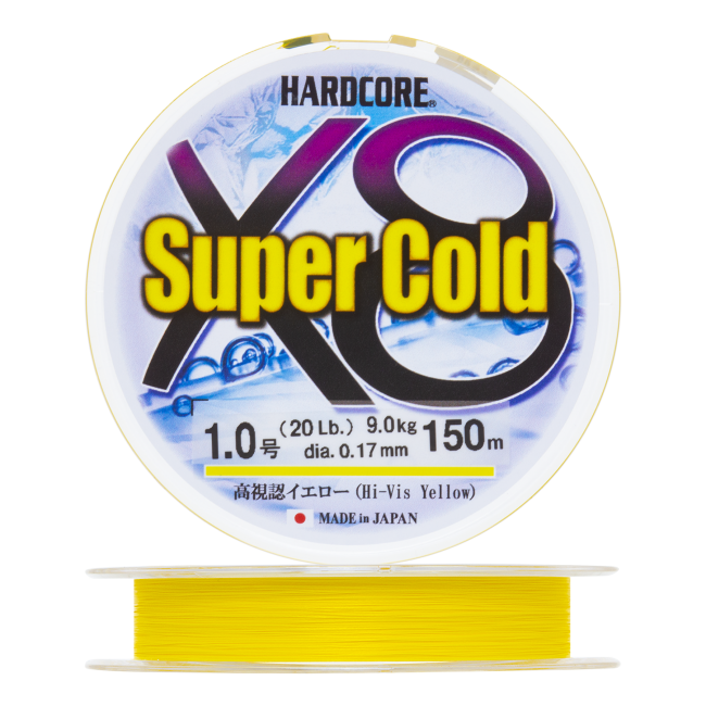 Шнур плетеный Duel Hardcore Super Cold X8 #1,0 0,17мм 150м (hi-vis yellow)