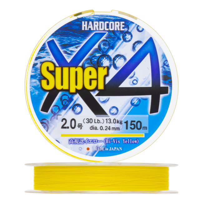 Шнур плетеный Duel Hardcore Super X4 #2,0 0,24мм 150м (hi-vis yellow)