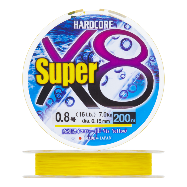 Шнур плетеный Duel Hardcore Super X8 #0,8 0,15мм 200м (hi-vis yellow)