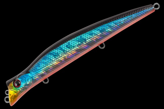 Особенности дизайна: IRON 130 F имеет две, разделенные выраженной боковой линией, рельефные фактуры поверхности. Верхняя часть выполнена в виде ромбовидных насечек , нижняя - в виде косых насечек. Тело воблера сразу за головной частью имеет сужение ,после которого вновь расширяется к обычным пропорциям минноу. Как таковой лопасти приманка не имеет. Ее заменяет несколько вытянутая «нижняя челюсть» и выемка (косой срез), но без углубления, как это сделано в попперах . В выемке расположены две петли для крепления к снасти – одна ближе к «нижней челюсти», а вторая немного выше горизонтальной оси приманки. Головная часть воблера рельефно имитирует жаберные крышки. Объемные 3D глаза дополняют дизайн приманки. IRON 130 F имеет систему дальнего заброса и баланса , а так же шумовую камеру. Приманка оснащена тремя тройниками Cultiva и силовыми заводными кольцами. Качество ЛКП и общее исполнение приманки соответствуют всем современным требованиям.