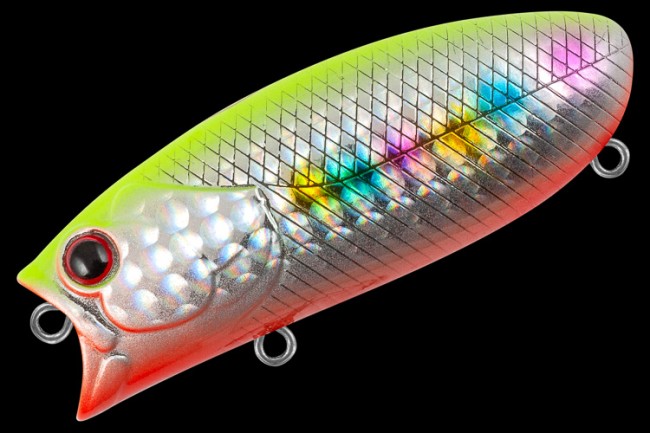 Корпус приманки имеет необычную для подповерхностника «пузатую» форму, свойственную скорее крэнкам. Вместо лопасти почти попперная ,но не так явно выраженная ,чаша, с более выдающейся вперед нижней частью. В воде BAD 60F занимает горизонтальное положение, с выступающей над поверхностью воды спиной.