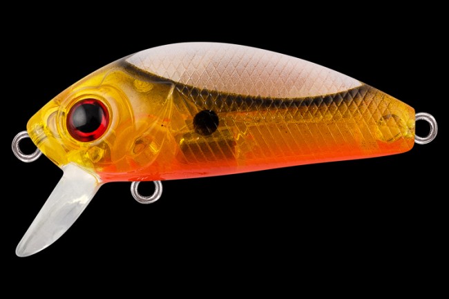Особенности дизайна: GNOM 45S имеет две, разделенные боковой линией, рельефные фактуры поверхности. Верхняя часть выполнена в виде ромбовидных насечек - чешуек, нижняя (вплоть до брюшка) в виде косых насечек. Головная часть воблера рельефно имитирует жаберные крышки рыбки, а 3D глаза дополняют реалистичность дизайна всей приманки. Вооружение приманки - два тройника соответствующего размера. Традиционно для воблеров TsuYoki - высококачественное ЛКП.