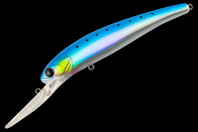 При отпуске шнура ( 0.2 мм ) около 40 -метров и скорости катера 3.5 - 4.0 км / час воблер заглубляется глубже 6 метров, показывая при этом малоамплитудную высокочастотную игру,характерную для приманок хорошо работающих по судаку. Наилучших результатов воблер добивается,если во время проводки он будет время от времени касаться дна,выбивая муть со дна. Не надо бояться зацепов при этом. Широкая и прочная лопата надежно защитит крючки воблера. Цветовые решения ,позволят Вам без труда подобрать нужную модель под любые условия ловли.