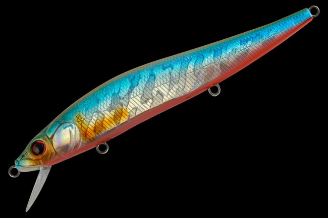 Особенности дизайна: WINK 110SP имеет две, разделенные боковой линией, рельефные фактуры поверхности. Верхняя часть выполнена в виде ромбовидных насечек - чешуек, нижняя (вплоть до брюшка) в виде косых насечек. Головная часть воблера рельефно имитирует жаберные крышки рыбки, а вклеенные 3D глаза завершают дизайн приманки. Воблер имеет систему дальнего заброса и баланса, и оснащен тремя тройниками Cultiva Owner, а так же силовыми заводными кольцами. В каталоге широкий выбор цветов, от провоцирующих до натуральных. Качество ЛКП на высоком современном уровне.