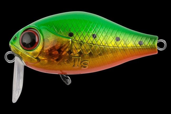 Особенности дизайна: DROP SSR 45F имеет характерную для крэнков толстую и короткую форму тела, резко сужающуюся к носовой и хвостовой частям приманки. По бокам - две рельефные фактуры поверхности, разделенные боковой линией. Верхняя часть (спинка и бока) выполнена в виде ромбовидных насечек - чешуек, нижняя - в виде косых насечек. Головная часть воблера рельефно имитирует жаберные крышки. Вклеенные объемные глаза завершают дизайн приманки.