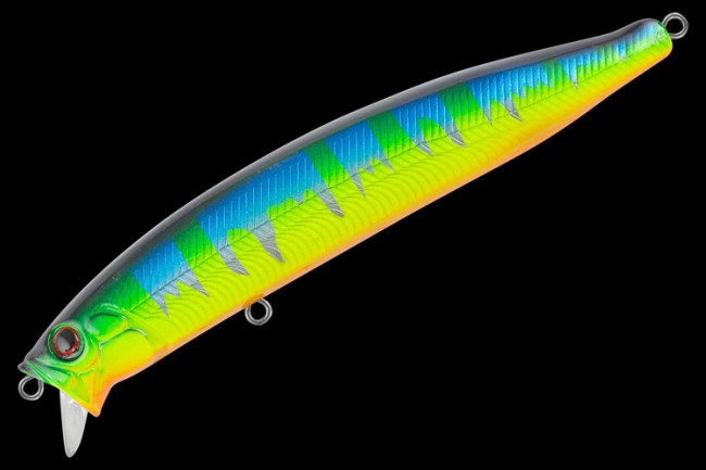 Особенности дизайна: ZANOZA 105F имеет две, разделенные выраженной боковой линией, рельефные фактуры поверхности. Верхняя часть выполнена в виде косых насечек , нижняя (вплоть до брюшка) в виде волнообразных насечек. Головная часть воблера рельефно имитирует жаберные крышки. Объемные 3D глаза завершают дизайн приманки. ZANOZA 105F имеет систему дальнего заброса и баланса , а так же шумовую камеру. Приманка оснащена двумя тройниками Cultiva и силовыми заводными кольцами. Качество лако-красочного покрытия соответствует всем современным требованиям.