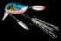 Особенности дизайна: KIKI 54F не похож на остальные воблеры-кренки, поскольку имеет в своей конструкции ряд оригинальных дополнительных элементов, призванных привлечь внимание хищной рыбы. Под брюшком у приманки находится подвижный металлический лепесток, который вращается при проводке, в задней части – жесткий пластиковый хвостик, который при движении в воде колеблется из стороны в сторону, а единственный тройник воблера оснащён мушкой из перьев и довольно длинных силиконовых нитей. Головная часть KIKI 54F рельефно имитирует жаберные крышки, а вклеенные объемные 3D глаза завершают реалистичный дизайн приманки.