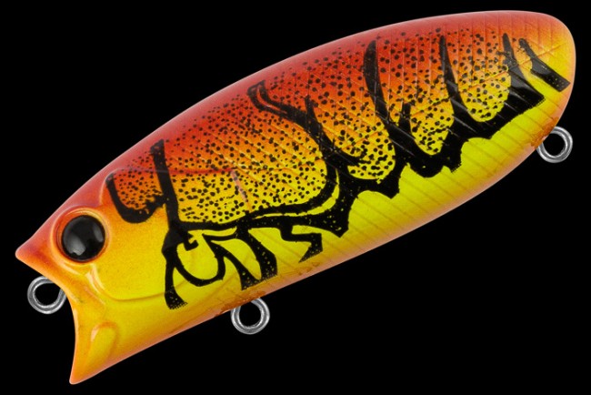 Корпус приманки имеет необычную для подповерхностника «пузатую» форму, свойственную скорее крэнкам. Вместо лопасти почти попперная ,но не так явно выраженная ,чаша, с более выдающейся вперед нижней частью. В воде BAD 60F занимает горизонтальное положение, с выступающей над поверхностью воды спиной.