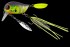 Особенности дизайна: KIKI 54F не похож на остальные воблеры-кренки, поскольку имеет в своей конструкции ряд оригинальных дополнительных элементов, призванных привлечь внимание хищной рыбы. Под брюшком у приманки находится подвижный металлический лепесток, который вращается при проводке, в задней части – жесткий пластиковый хвостик, который при движении в воде колеблется из стороны в сторону, а единственный тройник воблера оснащён мушкой из перьев и довольно длинных силиконовых нитей. Головная часть KIKI 54F рельефно имитирует жаберные крышки, а вклеенные объемные 3D глаза завершают реалистичный дизайн приманки.