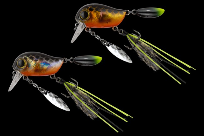 Особенности дизайна: KIKI 54F не похож на остальные воблеры-кренки, поскольку имеет в своей конструкции ряд оригинальных дополнительных элементов, призванных привлечь внимание хищной рыбы. Под брюшком у приманки находится подвижный металлический лепесток, который вращается при проводке, в задней части – жесткий пластиковый хвостик, который при движении в воде колеблется из стороны в сторону, а единственный тройник воблера оснащён мушкой из перьев и довольно длинных силиконовых нитей. Головная часть KIKI 54F рельефно имитирует жаберные крышки, а вклеенные объемные 3D глаза завершают реалистичный дизайн приманки.