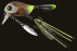 Особенности дизайна: KIKI 54F не похож на остальные воблеры-кренки, поскольку имеет в своей конструкции ряд оригинальных дополнительных элементов, призванных привлечь внимание хищной рыбы. Под брюшком у приманки находится подвижный металлический лепесток, который вращается при проводке, в задней части – жесткий пластиковый хвостик, который при движении в воде колеблется из стороны в сторону, а единственный тройник воблера оснащён мушкой из перьев и довольно длинных силиконовых нитей. Головная часть KIKI 54F рельефно имитирует жаберные крышки, а вклеенные объемные 3D глаза завершают реалистичный дизайн приманки.