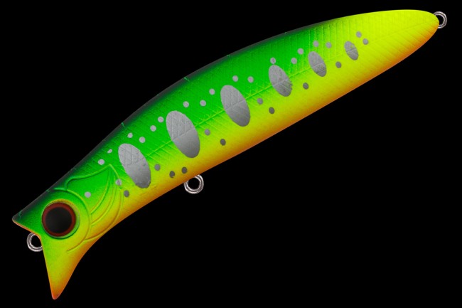 Особенности дизайна: GODZI 90F имеет две разделенные боковой линией рельефные фактуры поверхности. Верхняя часть выполнена в виде мелких насечек-чешуек, нижняя - в виде косых мелких насечек. Головная часть рельефно имитирует открытую пасть и жаберные крышки рыбки. Большие вклеенные объемные глаза завершают дизайн приманки. GODZI 90F оснащен системой баланса, которая одновременно выполняет функцию шумовой камеры. Приманка комплектуется двумя острыми тройниками соответствующего размера и надёжной фурнитурой. Поппер имеет современное качественное лакокрасочное покрытие и широкий выбор расцветок в каталоге.
