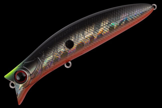 Особенности дизайна: GODZI 90F имеет две разделенные боковой линией рельефные фактуры поверхности. Верхняя часть выполнена в виде мелких насечек-чешуек, нижняя - в виде косых мелких насечек. Головная часть рельефно имитирует открытую пасть и жаберные крышки рыбки. Большие вклеенные объемные глаза завершают дизайн приманки. GODZI 90F оснащен системой баланса, которая одновременно выполняет функцию шумовой камеры. Приманка комплектуется двумя острыми тройниками соответствующего размера и надёжной фурнитурой. Поппер имеет современное качественное лакокрасочное покрытие и широкий выбор расцветок в каталоге.