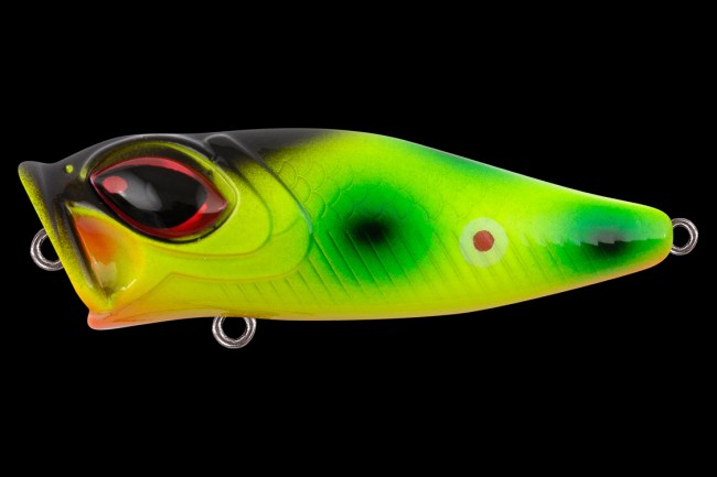Особенности дизайна: ZOKI 44F имеет две разделенные боковой линией рельефные фактуры поверхности. Верхняя часть выполнена в виде мелких насечек-чешуек, нижняя - в виде косых мелких насечек. Головная часть поппера рельефно имитирует открытую пасть и жаберные крышки рыбки. Большие вклеенные объемные глаза завершают дизайн приманки. ZOKI 44F имеет систему баланса, выполняющую так же функцию шумовой камеры. Приманка оснащена двумя острыми тройниками соответствующего размера и надёжной фурнитурой. Поппер имеет современное качественное лакокрасочное покрытие и широкий выбор расцветок в каталоге.