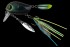 Особенности дизайна: KIKI 54F не похож на остальные воблеры-кренки, поскольку имеет в своей конструкции ряд оригинальных дополнительных элементов, призванных привлечь внимание хищной рыбы. Под брюшком у приманки находится подвижный металлический лепесток, который вращается при проводке, в задней части – жесткий пластиковый хвостик, который при движении в воде колеблется из стороны в сторону, а единственный тройник воблера оснащён мушкой из перьев и довольно длинных силиконовых нитей. Головная часть KIKI 54F рельефно имитирует жаберные крышки, а вклеенные объемные 3D глаза завершают реалистичный дизайн приманки.