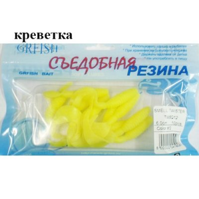 Съедобная резина Grfish Smell Twister 60mm, аттрактант креветка, уп.10 штук, цвет #12 LUMI
