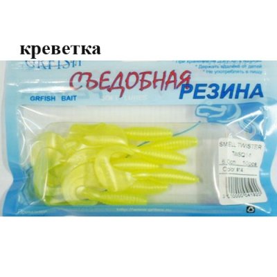 Съедобная резина Grfish Smell Twister 60mm, аттрактант креветка, уп.10 штук, цвет #14 LUMI отзывы