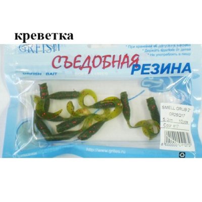 Съедобная резина Grfish Smell Grub 2" 50mm, аттрактант креветка, уп.10 штук, цвет #17 отзывы