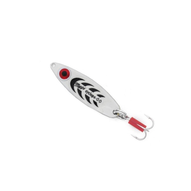 SYCLOPS — одна из лучших колеблющихся блесен в мире, имеющая превосходно отработанную форму. Старинные прототипы, схожие с этой блесной, в наше время практически не сохранились. SYCLOPS унаследовал от них двойной прогиб в горизонтальной проекции, обеспечивающий при проводке максимальное сходство с движениями живой рыбы. Блесна не имеет мягкого профиля, ее форма образована сопряжением плоскостей, в том числе, образующих в хвостовой части «ребро устойчивости», гарантирующее SYCLOPS устойчивую, без «свалов», игру как на спокойной воде, так и при любой скорости течения. Благодаря идеально расположенному центру тяжести и удачному соотношению между весом и площадью приманки, все размеры SYCLOPS сохраняют превосходную игру даже при свободном падении после прекращения проводки. Как известно при ловле лосося и щуки такой приём бывает незаменим. Кроме того, эффект от движения блесны значительно усиливается за счет игры света, отражаемого плоскостями. Стандартный вариант SYCLOPS имеет окраску серебряного, золотого и черного цветов, с красным и черным рефлекторным рисунком. Кроме этого, MEPPS производит блесны, декорированные желтой наклейкой с красным рисунком. SYCLOPS — практически идеальная приманка для всех видов хищных рыб на всех водоемах и при любых условиях ловли. Сложный профиль имеет десять граней отражения света. Его движение, благодаря идеальным колебаниям в различных плоскостях, очень точно имитирует живую рыбу - идеальную жертву хищника. Устойчивость игры гарантирована при любой скорости проводки. Такая характерная особенность облегчает и быстрый охват больших участков стоячих вод (щука, судак, окунь), и обеспечивает удобную ловлю на течении (лосось, кумжа, форель).