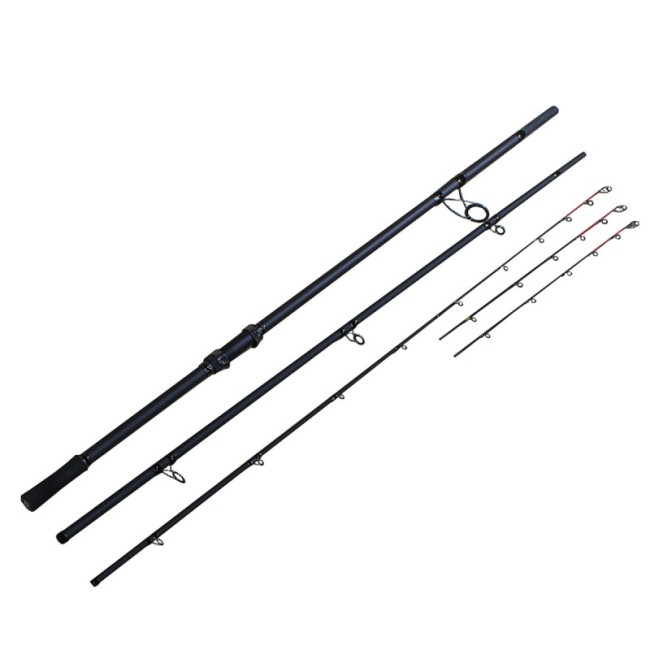 На удилищах установлены пропускные кольца увеличенного диаметра. Ближайшие к катушкодержателю кольца имеют усиленные рамы, форма которых оптимизирована под дальний заброс. Для предупреждения перехлестов тюльпан оснащен противозахлестной рамой, а ближайшие к нему кольца установлены на небольших расстояниях друг от друга. Удобная разнесенная рукоятка удилища из EVA, снабжена надежным катушкодержателем. Удилище прекрасно подойдет для ловли как в стоячих водоемах, так и в водоемах с течением.