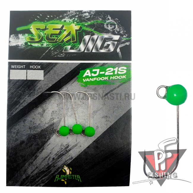 Джиг-головки вольфрамовые AjiMaster Sea Jig, 0.8 г, #6, зеленый