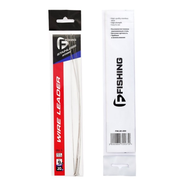 F-FISHING Поводок скрутка Wire Leader стальной 9кг 20см 0.30мм 5шт