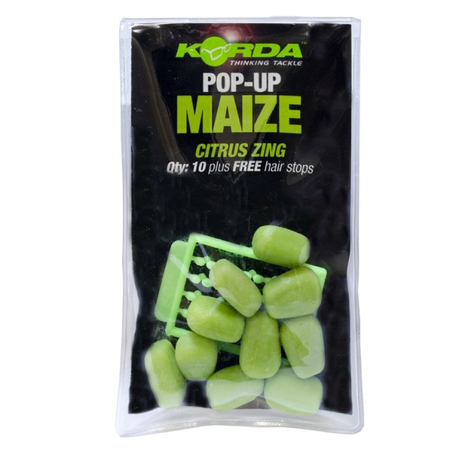 Korda Maize Pop-Up — искусственная приманка в виде кукурузы, пропитанная ароматизатором. Приманка прошла успешные испытания на большинстве водоемов Европы и показала отличные результаты. Ее можно использовать 2-мя способами: одну кукурузу для нейтральной плавучести или две для плавающей насадки. Доступна в 4 цветах и ароматах: Green (цитрус), Pink (фруктовый), White (банан и карамель) и Yellow (фруктовый).