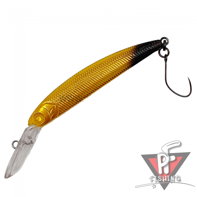 Отличие от остальных моделей серии минноу это отличительная лопатка которая абсолютно новой формы. В центре лопатки имеется специальное утолщение, благодаря чему центр тяжести приманки смещен к головной части. Это дает более быстрое заглубление на горизонт проводки. Воблер заточен под проводку катушкой, а не спиннингом. Pelican Minnow 50F от Nories оснащаются одним одинарным крючком, расположенным в хвостовой части.
